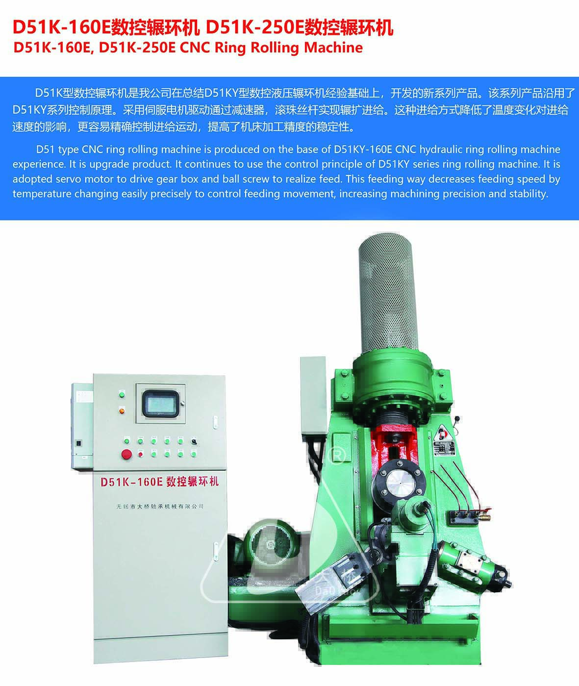 D51K型數(shù)控輾環(huán)機(jī)是我公司在總結(jié)D51KY型數(shù)控液壓輾環(huán)機(jī)經(jīng)驗(yàn)基礎(chǔ)上,開(kāi)發(fā)的系列產(chǎn)品。該系列產(chǎn)品沿用了 D51KY系列控制原理。采用伺服電機(jī)驅(qū)動(dòng)通過(guò)減速器,滾珠絲桿實(shí)現(xiàn)輾擴(kuò)進(jìn)給。這種進(jìn)給方式降低了溫度變化對(duì)進(jìn)給 速度的影響,更容易精確控制進(jìn)給運(yùn)動(dòng),提高了機(jī)床加工精度的穩(wěn)定性。